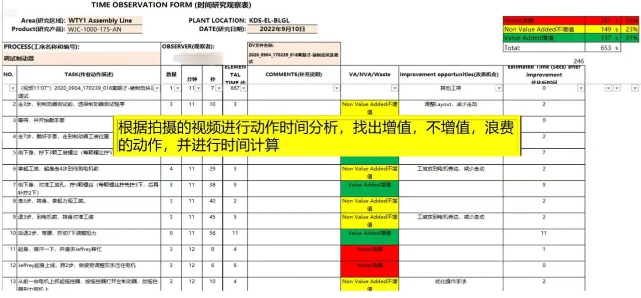 A legkorábbi belsőleg bevezetett szisztematikus fejlesztési eszközként az időelemzés komoly fejlesztési tapasztalatokat halmozott fel. Úttörő szerepet játszott a VSM általános fejlesztési törekvésében is – egyrészt a korábbi fejlesztések folytatásaként, másrészt a későbbi projektspecifikus fejlesztésekhez való kapcsolatként szolgált. A fejlesztési csoportok az alkalmazottak működésének filmre szabását rendelték ki az egyes folyamatok során a szabványos munkaidő-elveknek megfelelően. A csapattagok, sőt a frontvonalbeli alkalmazottak közösen ismételten átnézték a videókat, bontották és elemezték a munkamozgásokat, és kollektív ötletbörzét folytattak, hogy azonosítsák a fejlesztési lehetőségeket és javaslatokat tegyenek, végül pedig fejlesztési tervet fogalmaztak meg.
