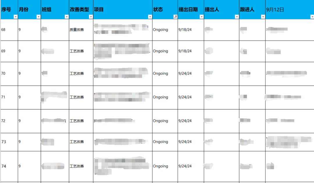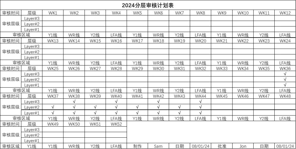 Minden csütörtökön a műhelyfelügyelők, a minőségbiztosítási (minőségbiztosítás) személyzet és az ME (gépészmérnöki) munkatársai együttesen végeznek vonali ellenőrzéseket az összes munkaállomásról, összpontosítva a minőségi veszélyek azonosítására az instabil minőségű munkaállomásokon. A széles lefedettség és a nagyszámú ellenőrzési tétel miatt számos ellenőrzési eredményt kell azonosítani és bezárni. Az ellenőrzési eredmények csak a folyamatos fejlesztés kezdetét jelzik a gyártósoron; A gyártósor folyamatos fejlesztésének kulcsfontosságú részét képezi ezeknek az eredményeknek a helyes és hatékony bezárása.