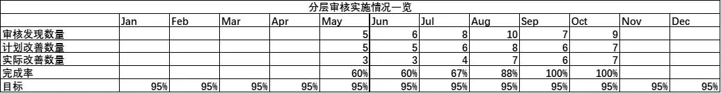 A réteges folyamat -ellenőrzések tartalma kiterjedt. Az ellenőrzések hatékonyságának és minőségének nyomon követése érdekében az LPA tényleges megvalósítása a műszerfalhoz hasonló módon jelenik meg. A megjelenített tartalom magában foglalja: a végrehajtás befejezési üteme, az ellenőrzési eredmények száma, a fejlesztések befejezési aránya stb.