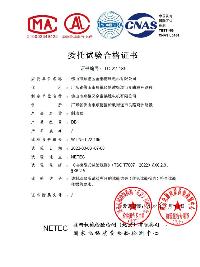 1. háztartási speciális berendezés -típusú teszt tanúsítás Kínában: beleértve a fő motor típusú tesztet, az autó felfelé irányuló túlzott védelmét és az autó nem szándékos mozgásvédelmi eszközének tanúsítását, amely a fő motorok összes sorozatának tanúsítását fedezi. Ugyanakkor gyors tanúsítási támogató szolgáltatásokat is nyújthat a teljes lift -ügyfelek számára.