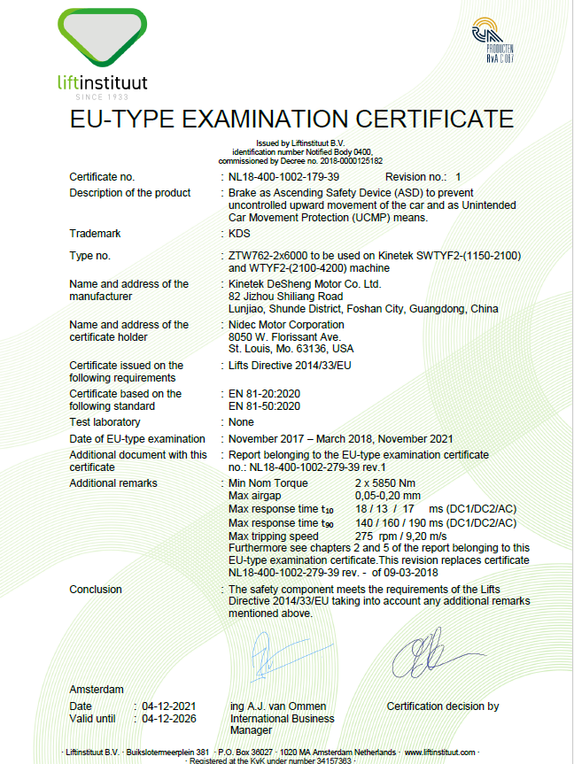 A NIDEC Lift Motors mindig a termékminőséget a vállalat alapvető versenyképességének tekintette. Nagy jelentőséggel bír a termék tanúsításában, megfelel a releváns szabványoknak és követelményeknek, biztosítja a termékminőséget és a biztonságot, jó márkaképet készít, és folyamatosan biztonságos és megbízható termékeket biztosít az ügyfelek számára.